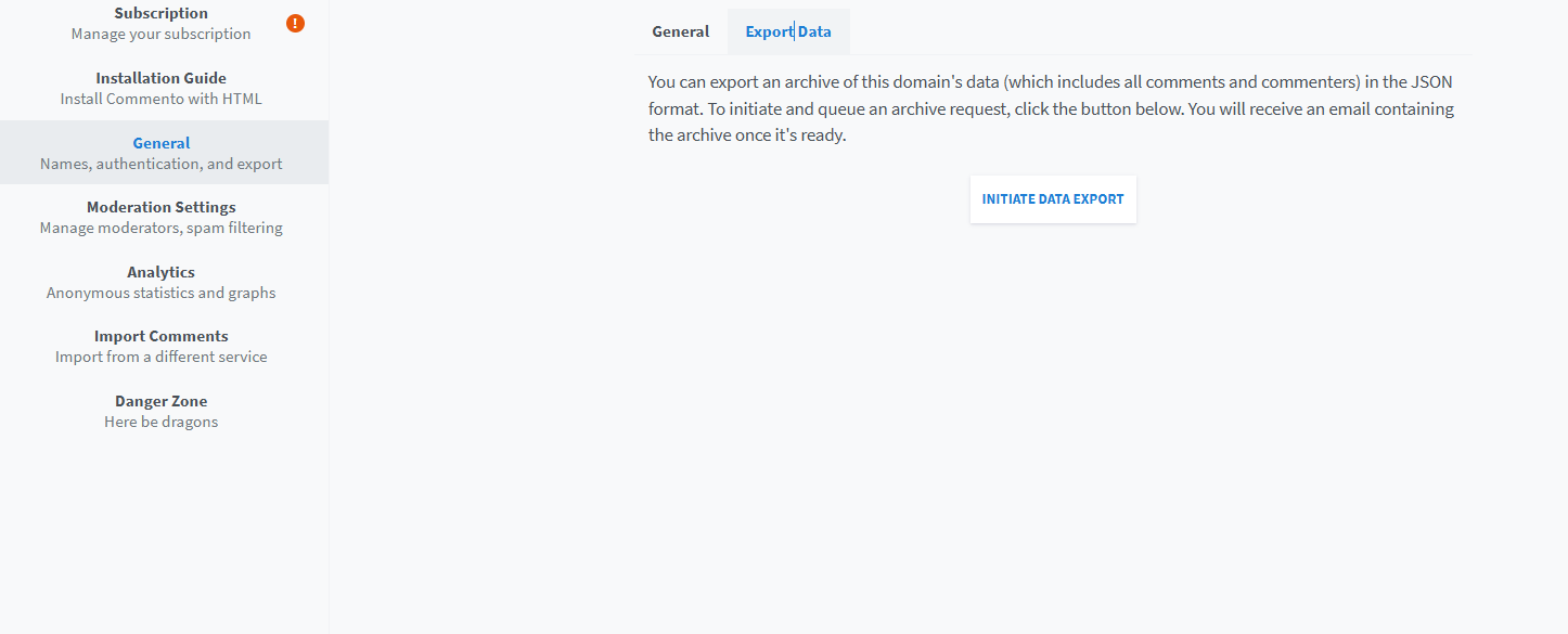Go to the Commento backend, click on "General - Export" in sequence, export the data file in JSON format, and then use the conversion tool for conversion.